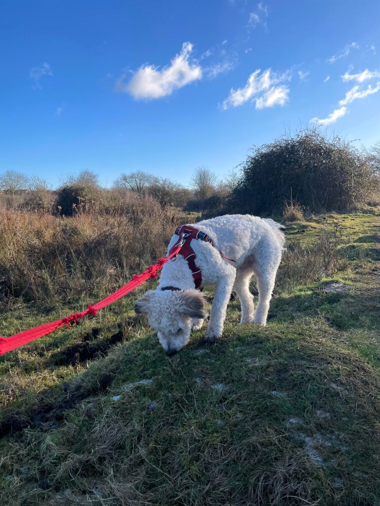 Paolo the Romanian mixed breed enjoying a sniff in Hitchin, Hertfordshire.
